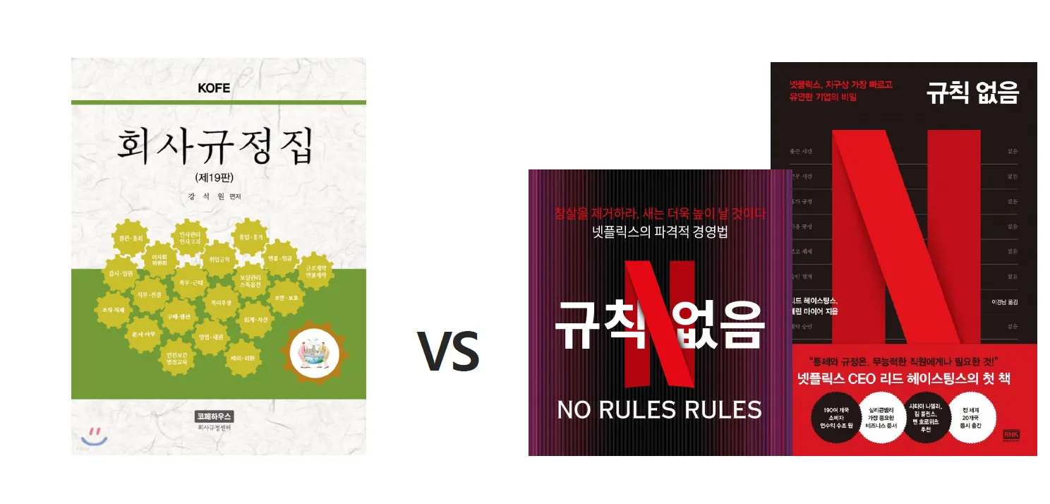 남들이 ‘규칙’을 줄인다 해서 무조건 줄이는 게 장땡이 아니다. 해당 기업의 ‘가치’에 맞게 줄여야 한다. 넷플릭스가 출퇴근을 없앨 수 있는 이유는 출퇴근 없이도 필요에 따라 일을 하기 때문이다. 휴가를 없앨 수 있는 이유는 휴가 가서도 노트북 가지고 필요시 업무 대응이 가능해서이다. 이 보든 것은 ‘기업이 추구하는 가치’를 중심으로 움직인다. 그러니까, 기업이 추구하는 ‘가치’를 중심으로 ‘규칙’이 세워져야 하는 것이다.