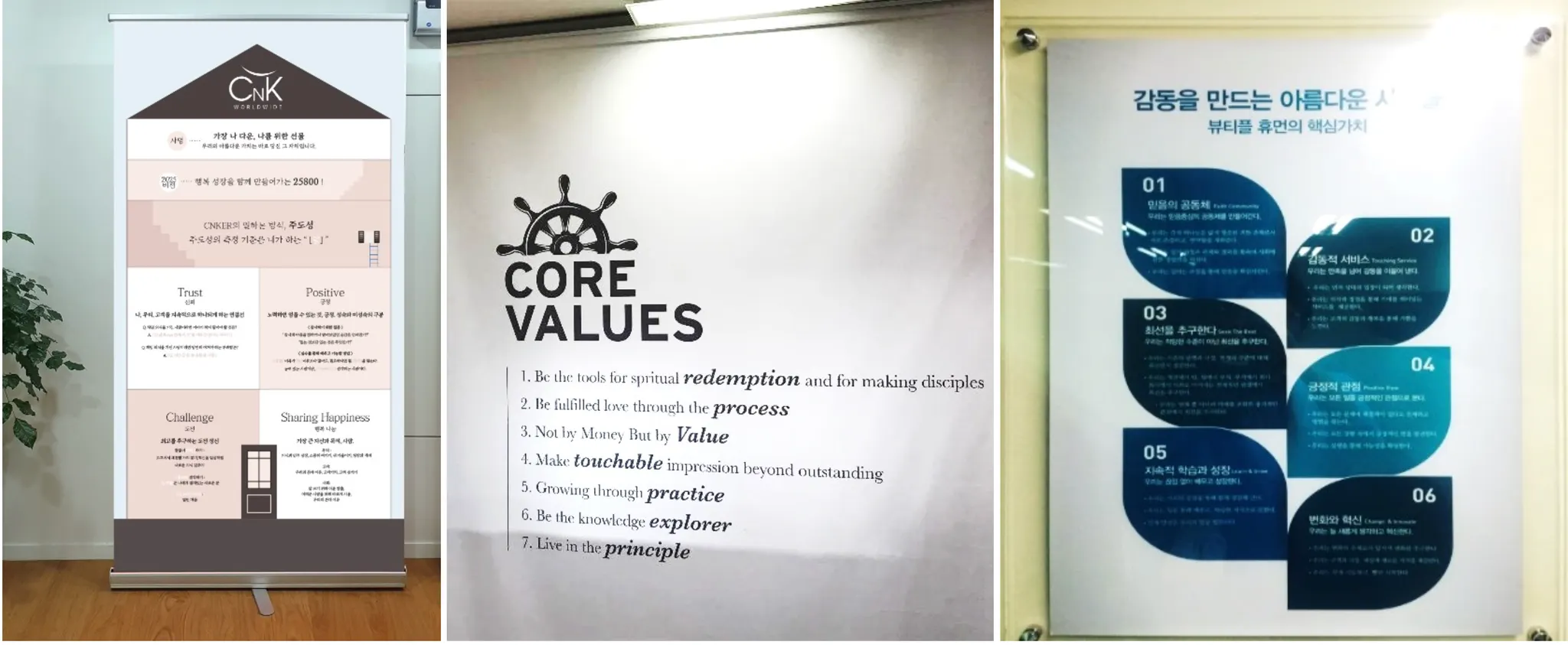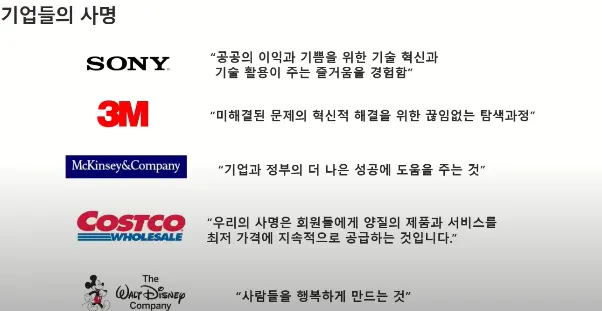 위대한 기업은 ‘한 문장을 실천한다’는 말이 있다. 한 문장을 실천한다는 것이 그저 대표가 좋아하는 속담이나 격언을 하나 골라 실천한다는 말이 아니다. 기업이 중요하게 여기는 가치와 방향, 사명을 한 문장에 담아 실천하는 것이다. 이를 위해서는 기업이 가지고 있는 핵심 가치와 역량, 앞으로의 방향과 이를 위한 실천 계획이 정의되어야 한다.