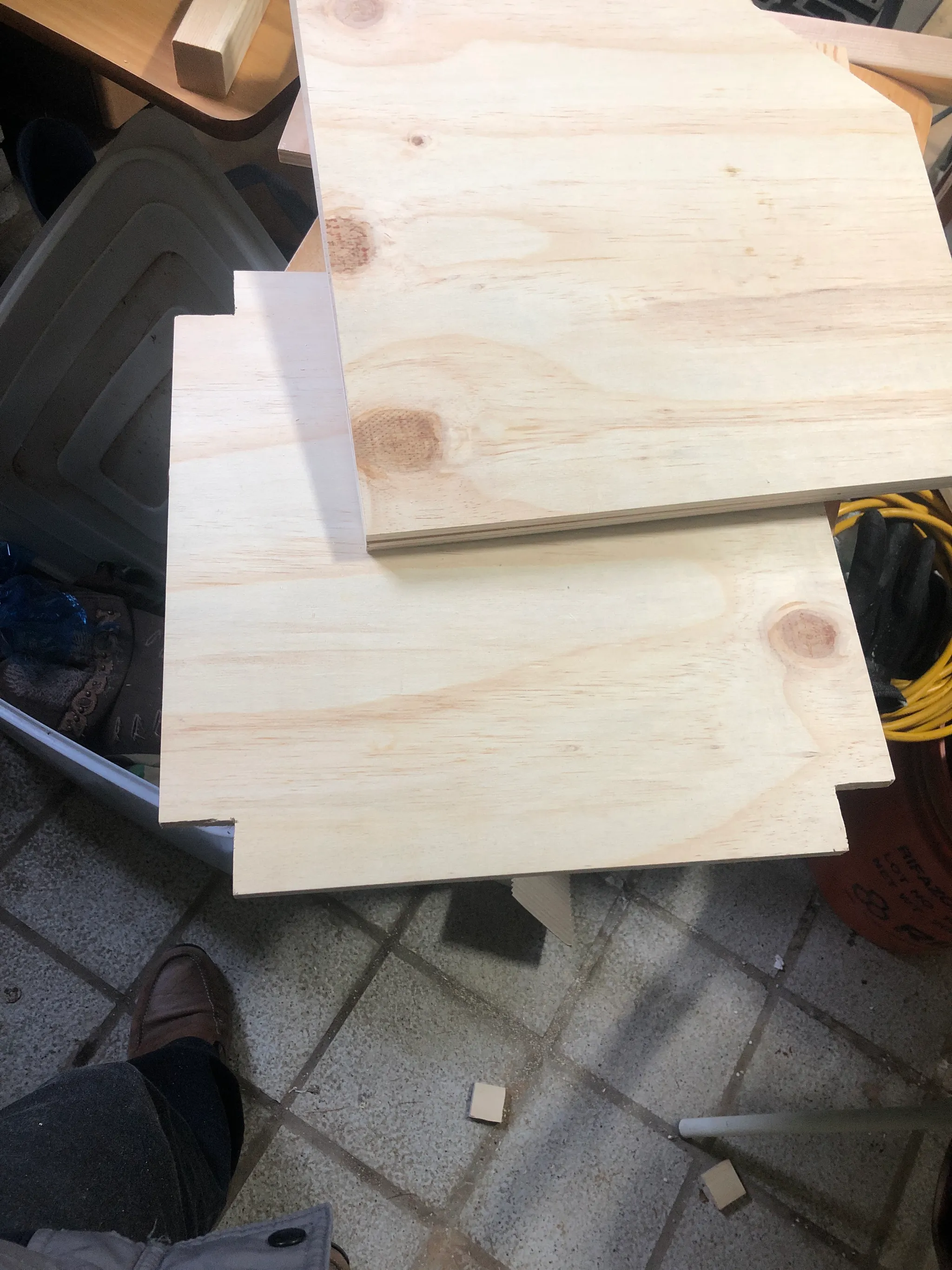 세 군데 모서리를 각지게 잘라놓은 작은 판자가 내가 ‘주문’을 잘못한 판자이다. 나중에 주문을 다시 했는데, 모서리를 각지게 자르는 비용이 장당 9,000원이다. 두 개면 만 팔천원, 비용을 아끼고자 이번에는 그냥 주문을 했다. 덕분에 이렇게 창고에 와서 톱질로 모서리 세 개를 두 장 잘라내는 일을 했다.