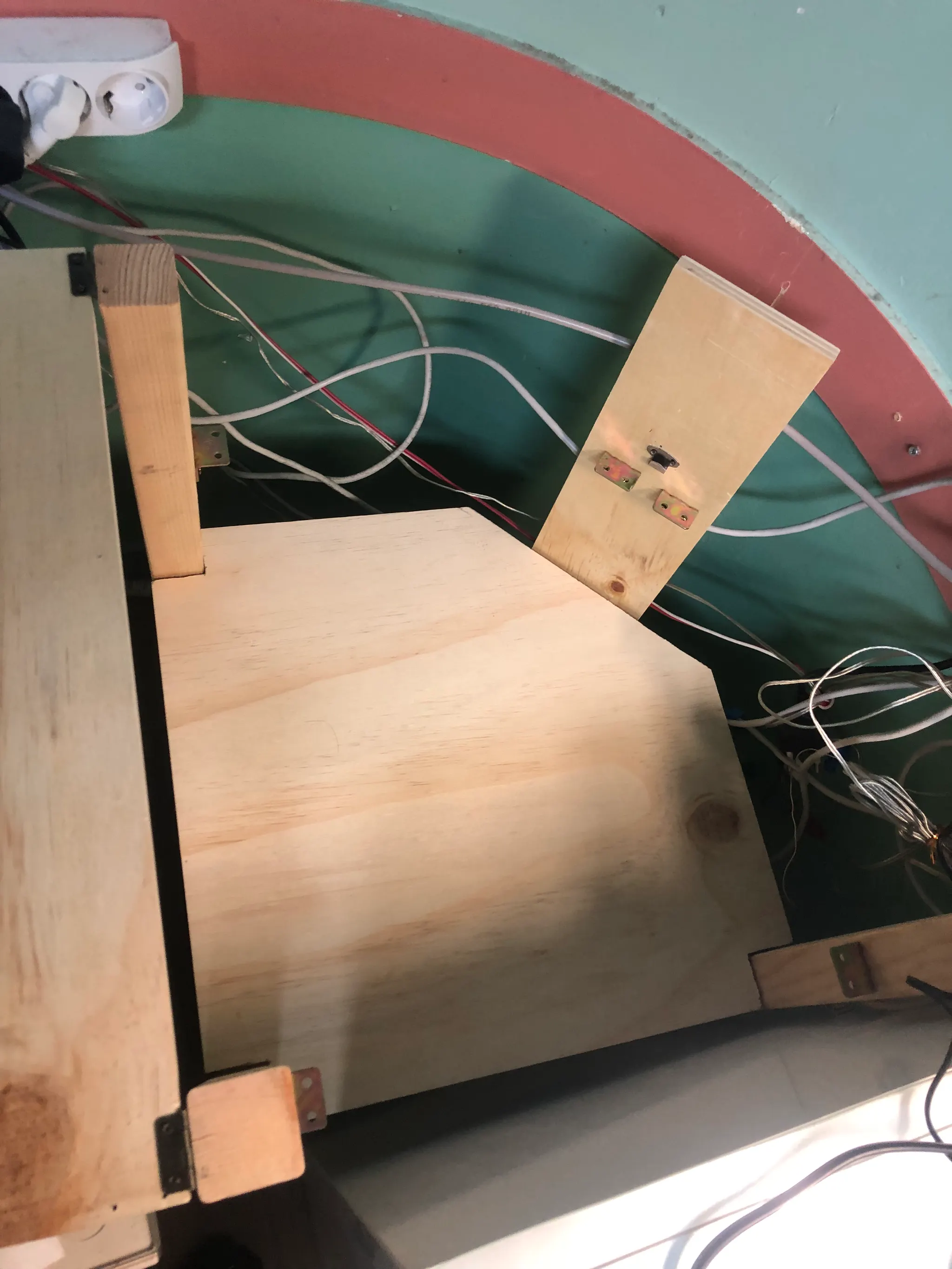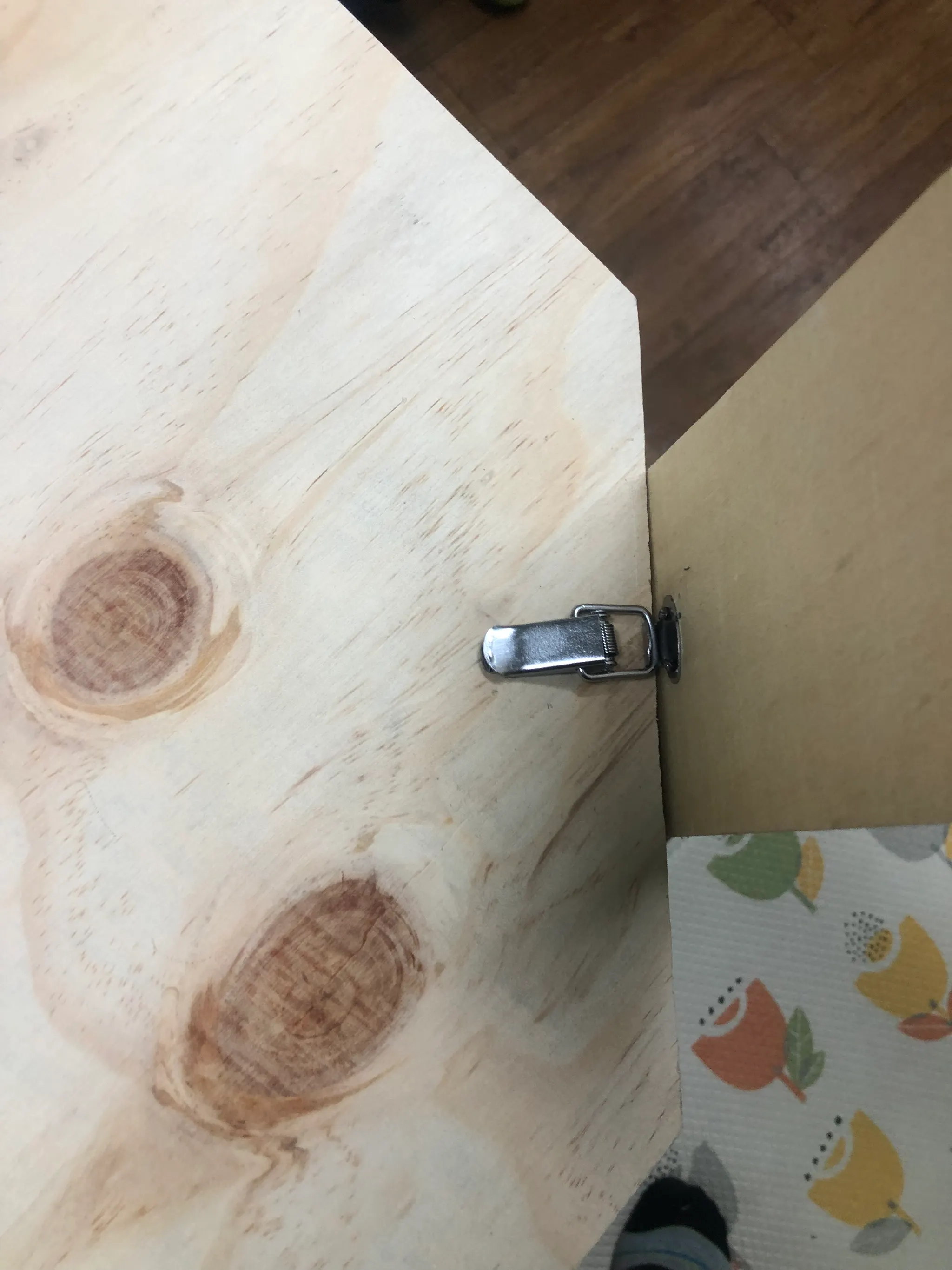 고민을 조금 하다, 판자다리쪽에만 지금과 같이 걸쇠를 걸었다. 다른 다리도 걸어주면 좋은데 남아있는 걸쇠가 저거 하나 뿐이더라. 판자 다리만 걸쇠로 걸어줬는데도 삐걱거림이 크게 잡혔다. 이렇게 점점 캐드 설계와는 다른 콘솔이 되어간다.